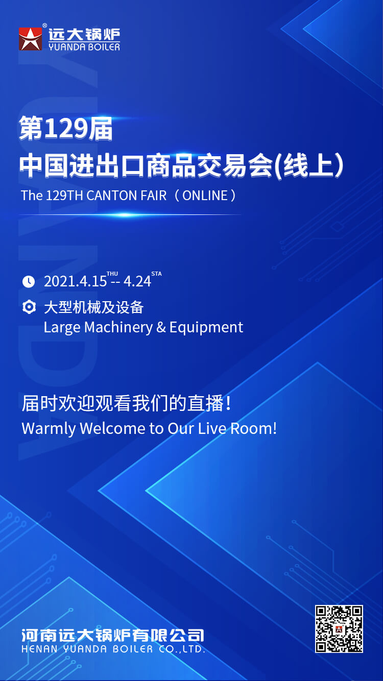 遠大鍋爐參展第129屆廣交會,云端直播參展!參展日期:2021年4月15日-4月24日,參展展區:大型機械及設備展區!屆時歡迎觀看直播,洽談業務!